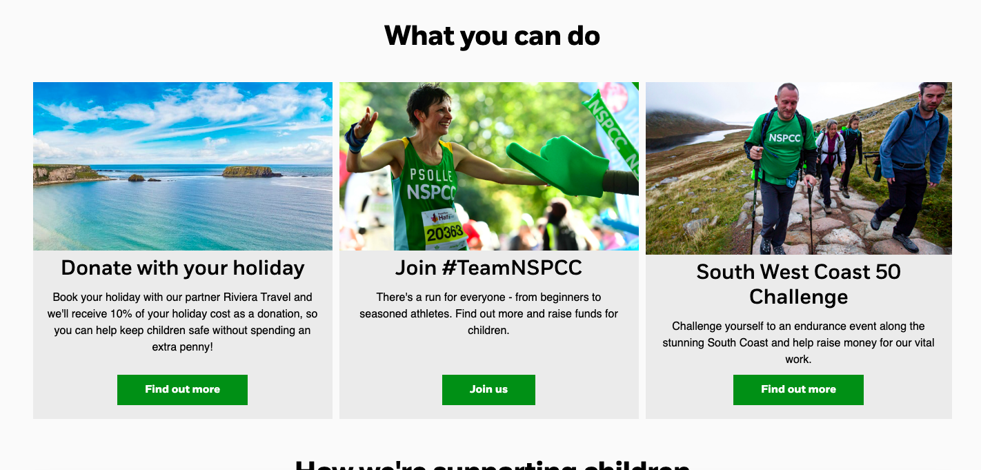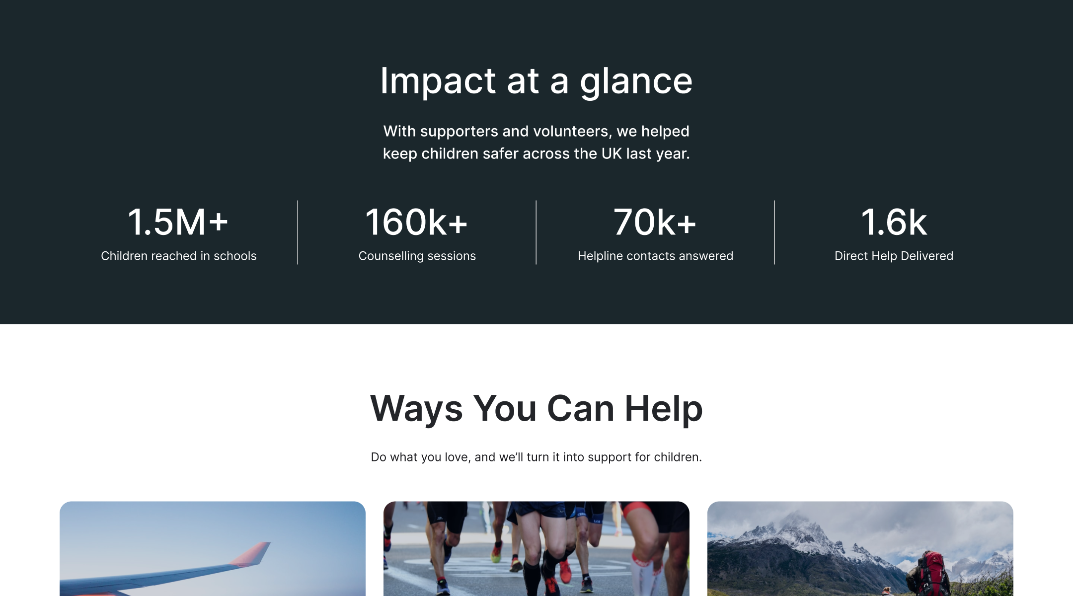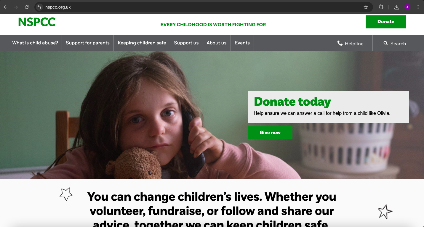 Disclaimer: This is a personal design exercise and is not affiliated with NSPCC. All trademarks and brand assets remain the property of their respective owners. Any figures shown in mockups are illustrative.