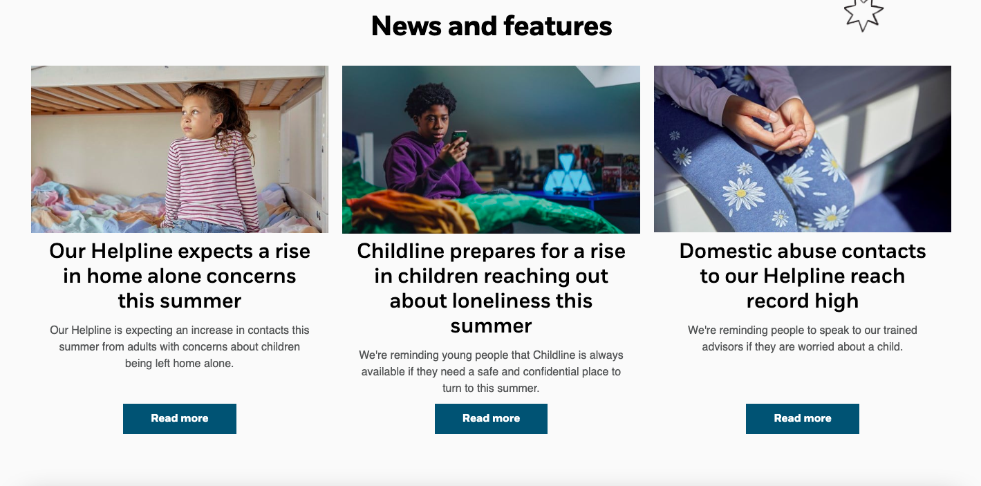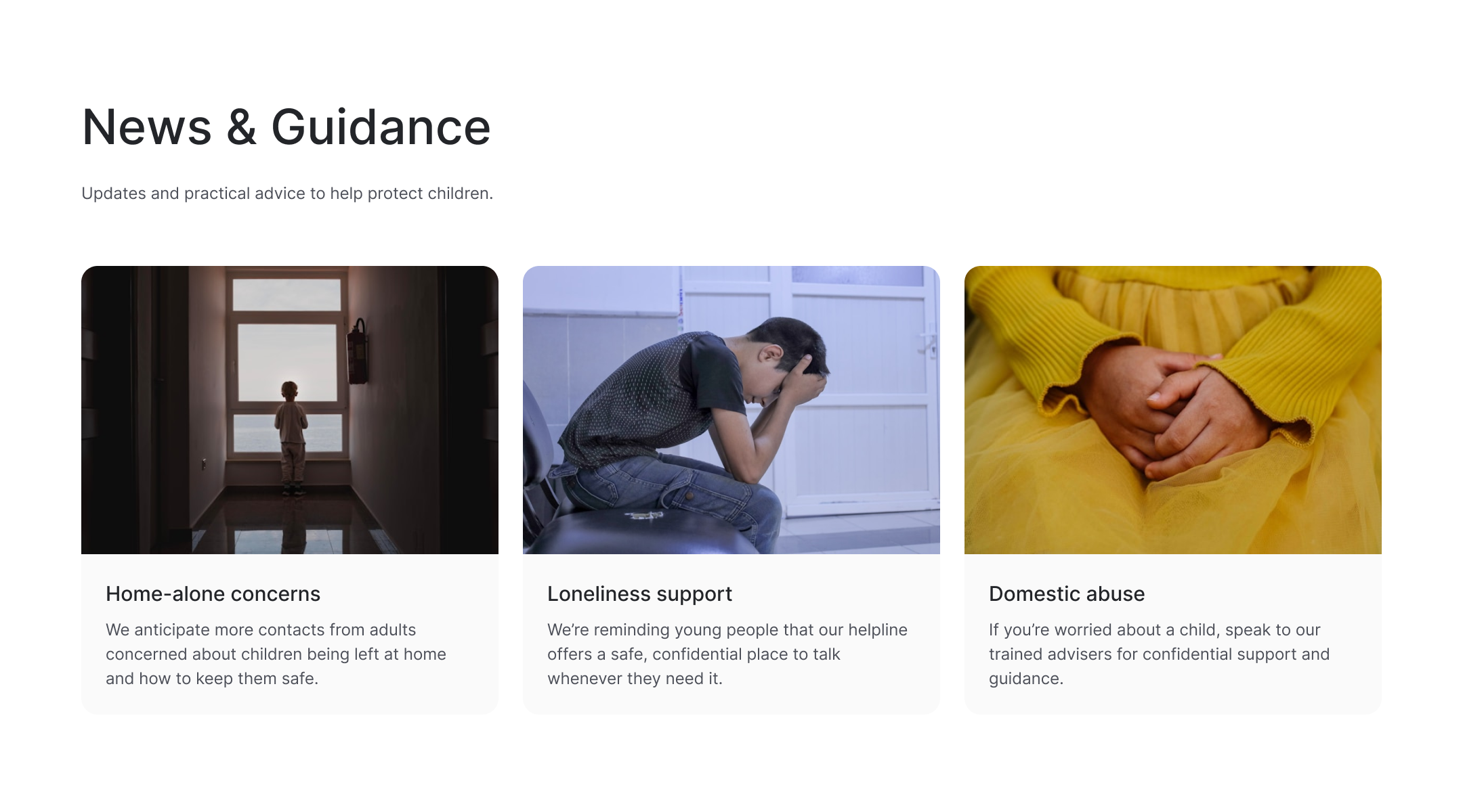 NSPCC serves multiple audiences: children in crisis, parents and carers seeking guidance, schools, and supporters. The original homepage has to speak to all of them at once, which can dilute focus. I redesigned the landing page to make urgent help and key actions easier to find while strengthening trust and readability.